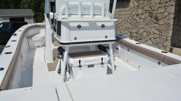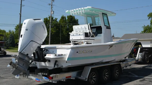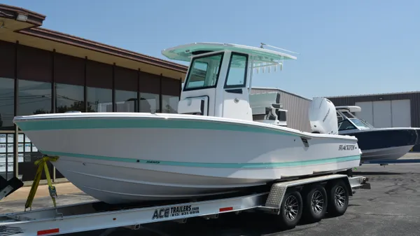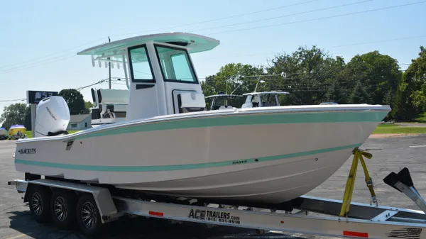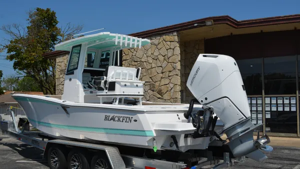 This all new model comes with the hull color matched hardtop underside, Garmin VHF 115 radio, Helm pad, Bow shade, Helm and leaning post covers, under water lights and Mercury Verado 350 V-10 in white! This model offers plenty of storage for gear and a stepped hull for that performance and ride you've come to expect from a Blackfin. Come check this all new model out today!