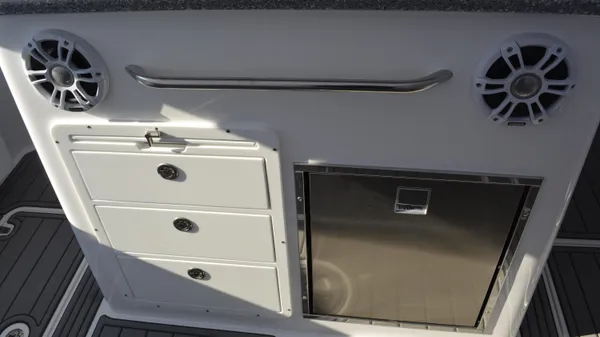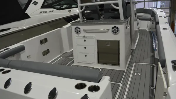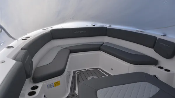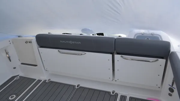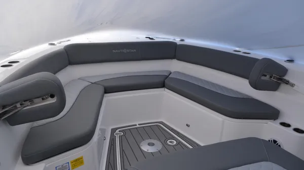 The 332 Offshore has the prestigious designation of NauticStar’s offshore flagship, not only because of its girth but also for its outstanding saltwater performance and tournament-ready fishability. With its 10-foot 6-inch beam, the 332 Offshore offers a cavernous and comfortable bow with new upholstery options and plush wrap-around seating. When it comes to hunting prey, the 332 Offshore is an acclaimed near-shore and intercostal fishing boat featuring a rigging station with tackle tray storage, tackle drawers, tool and leader storage, rigging surface, and stainless-steel rod holders. The Transom features a standard port pressurized circulating livewell with a clear acrylic lid. Bring all your gear and stow it in vast storage spaces and under gunwale rod racks. Everything has a space and is within reach. The 332 Offshore boasts the attitude and confidence to do more offshore.