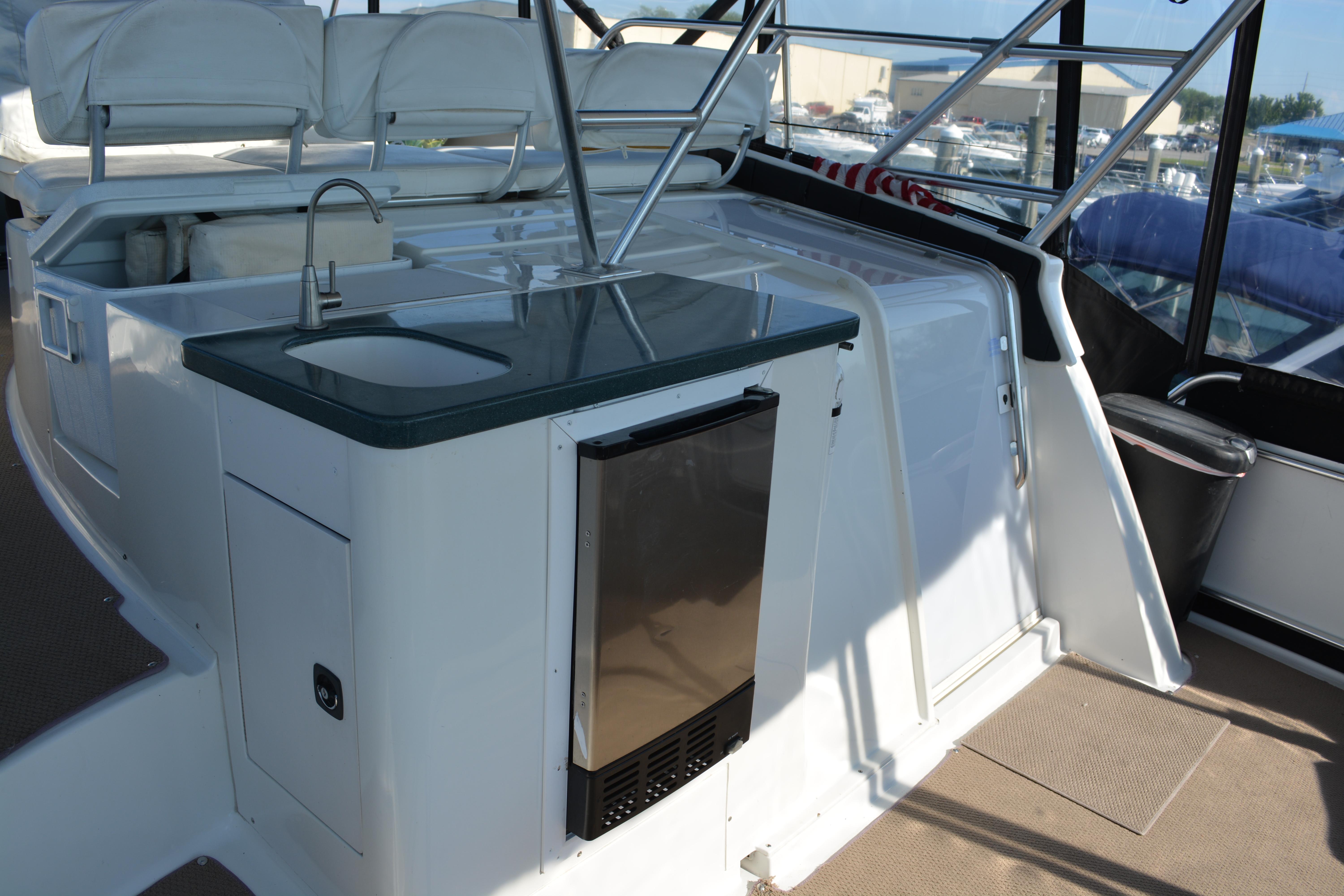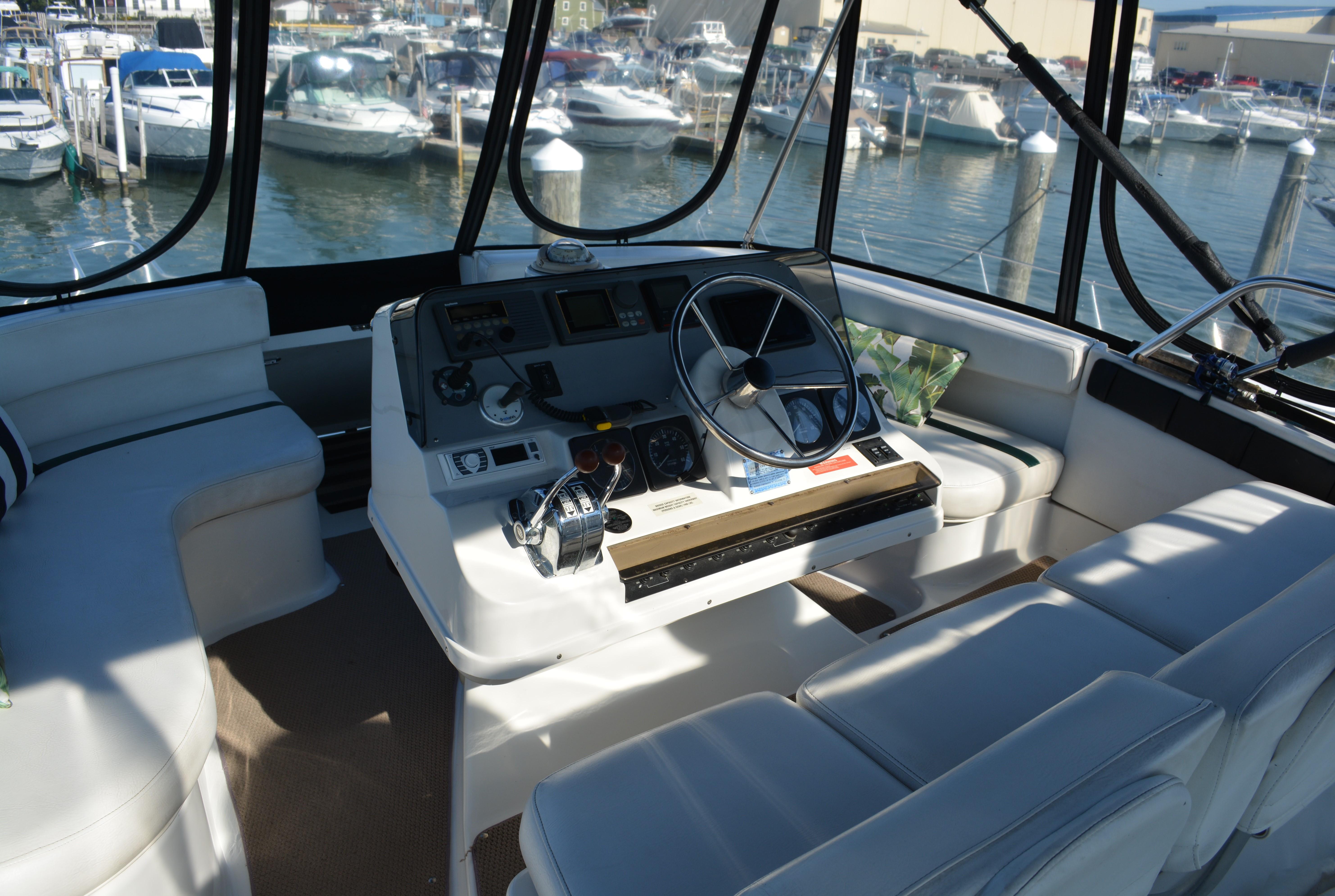 Don't miss out on this opportunity to own this very clean Mainship. Equipped with twin 454 gas engines that propel this boat along nicely. Has both bow and stern thrusters which make docking a breeze. Newer canvas. This layout has a spacious bridge with plenty of seating for the whole family with a walk through to access the foredeck. Large aft deck area for additional seating. Down below is a roomy salon area and galley. Both cabins have their own private head. This is a well cared for example and has been strictly a great lakes boat. Schedule a showing today!