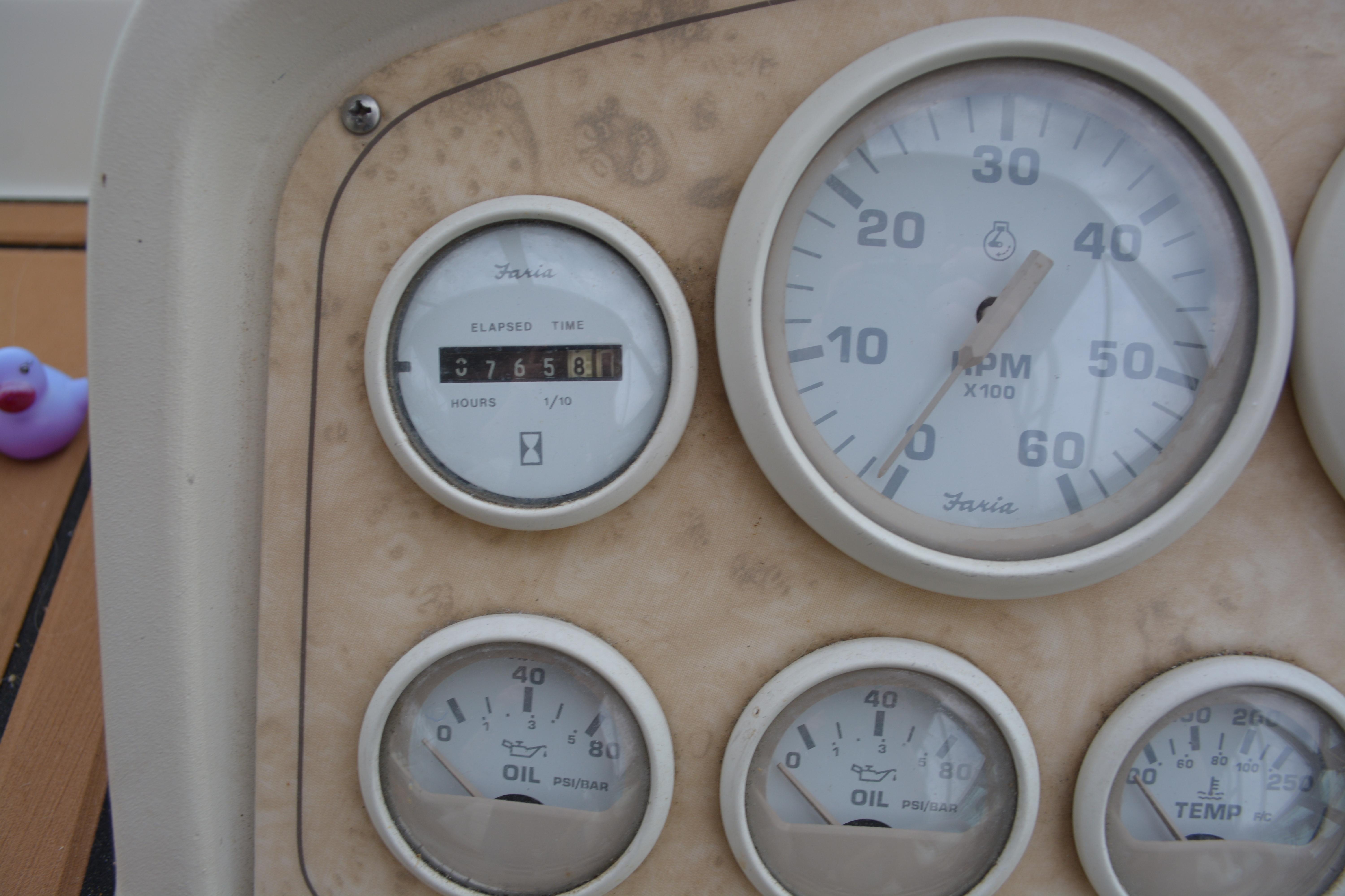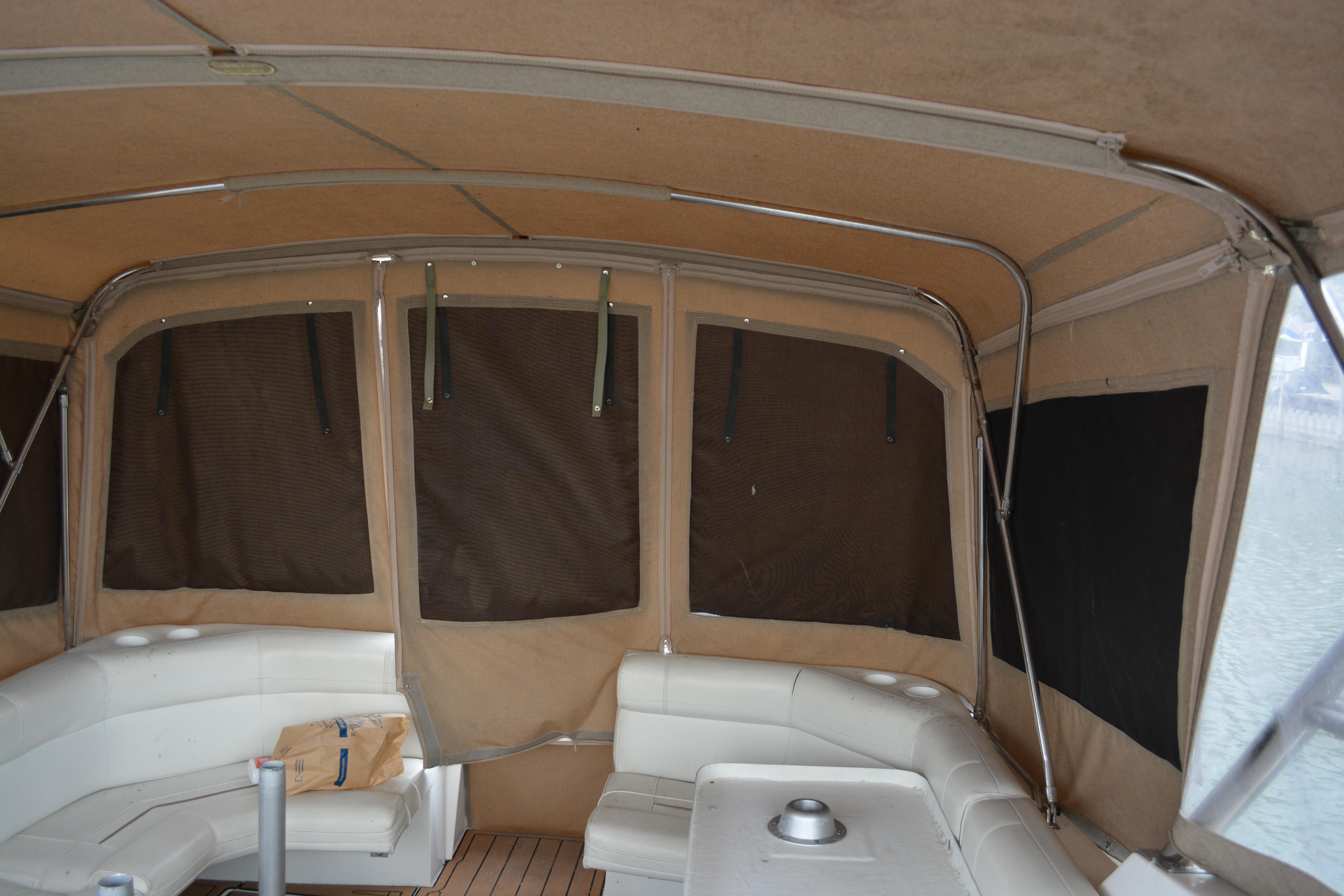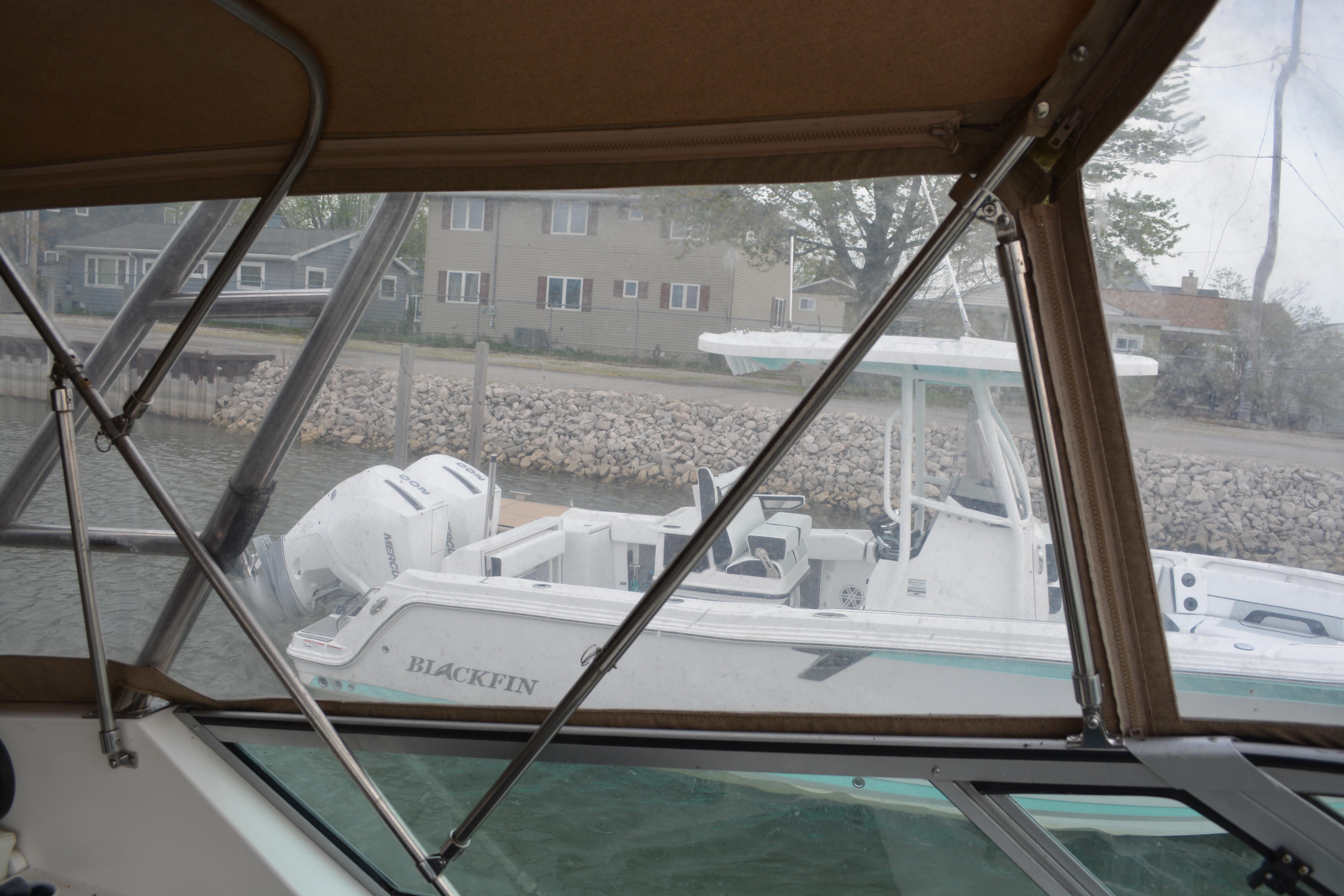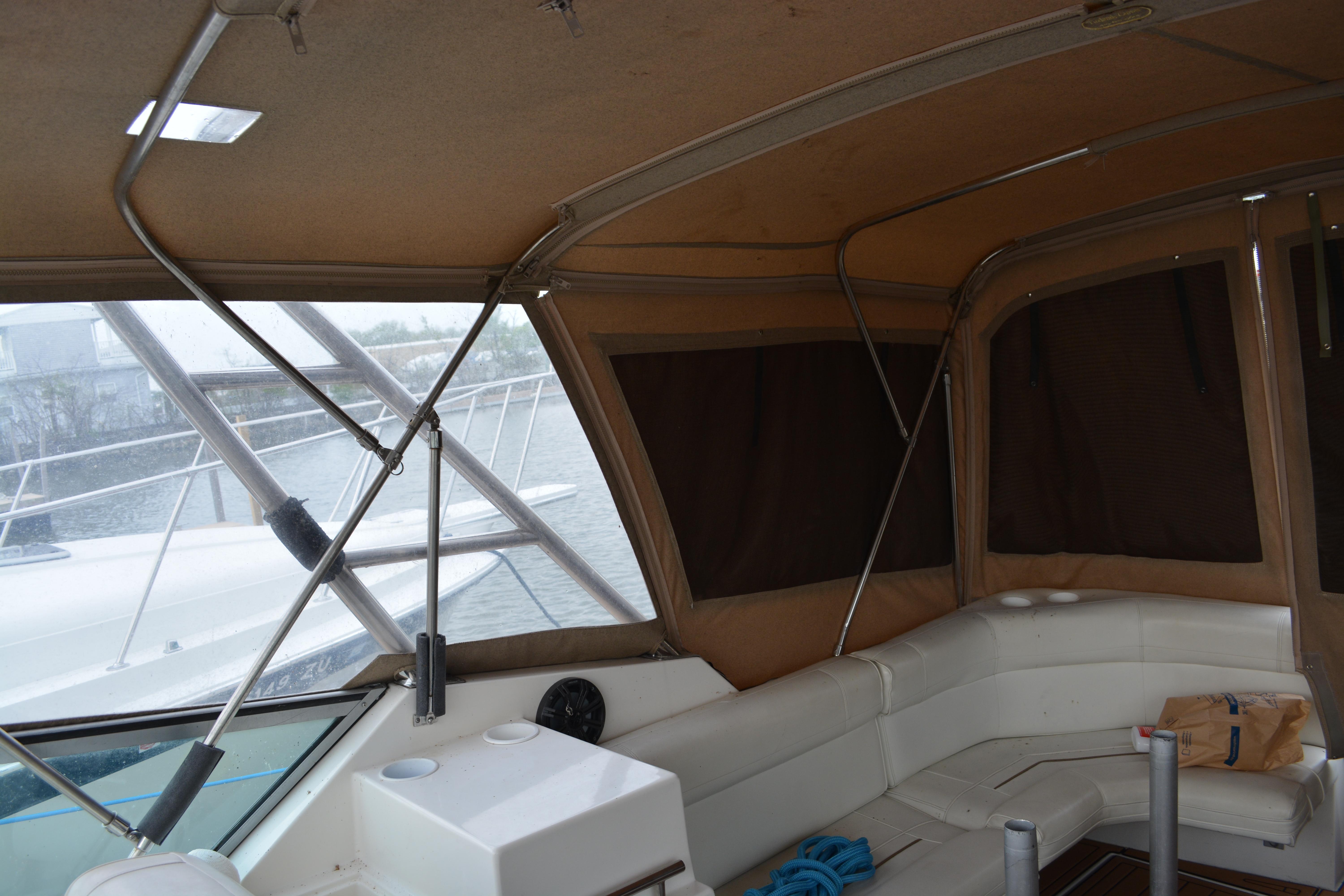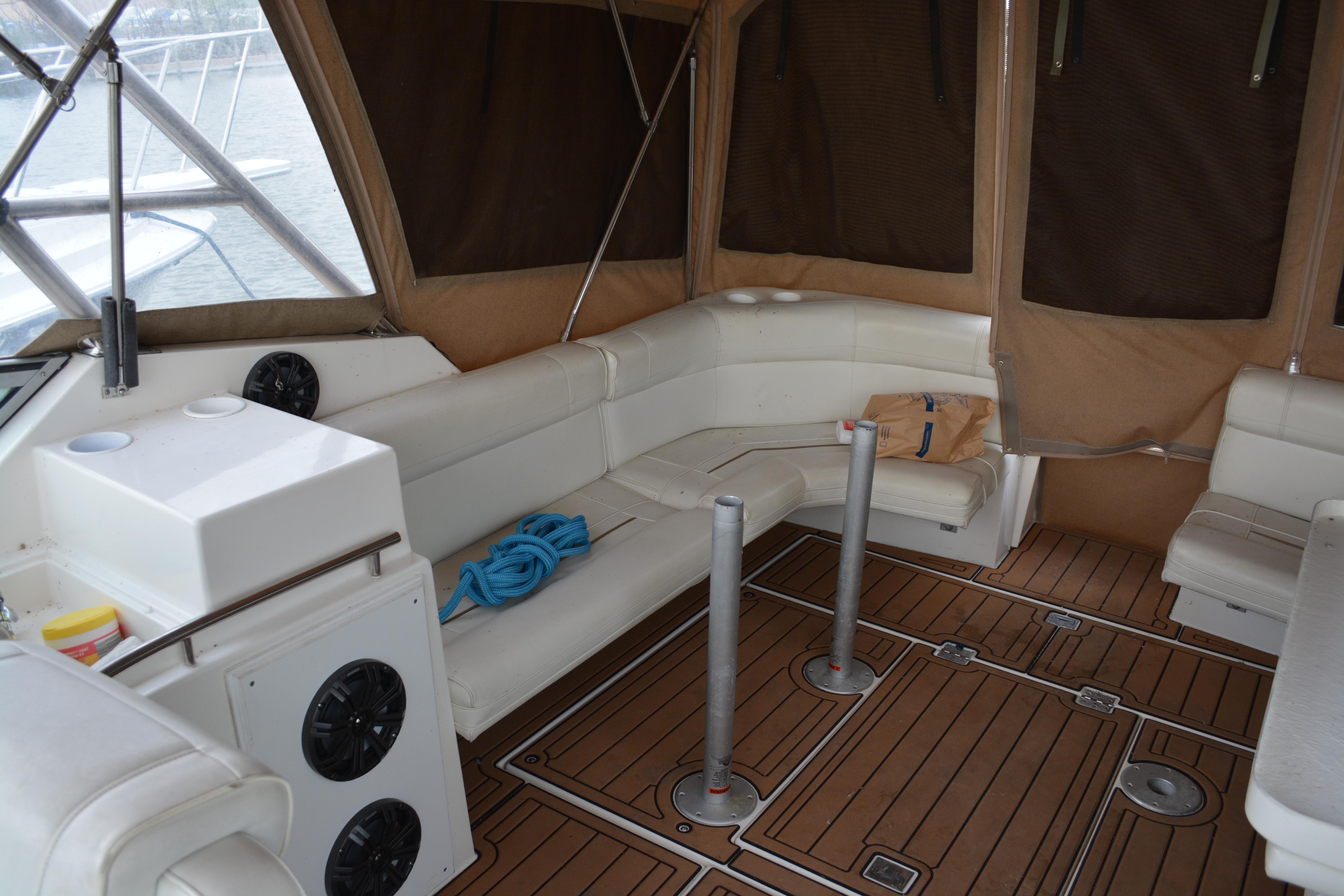 Nice example of a spacious express cruiser! Has newer sea dek flooring and camper canvas. Equipped with the very rare and desirable twin 7.4 LX EFI engines. Come check it out today!