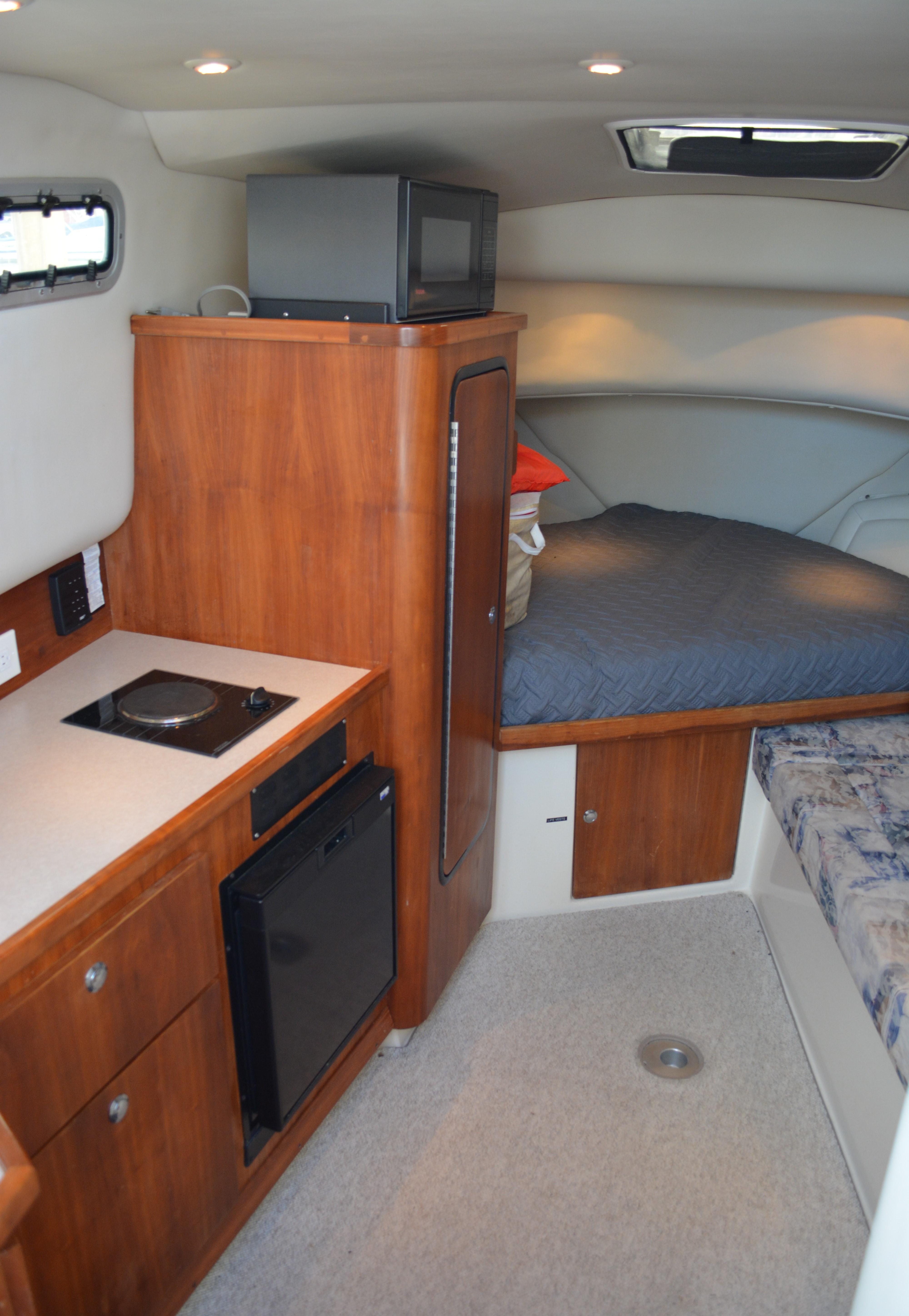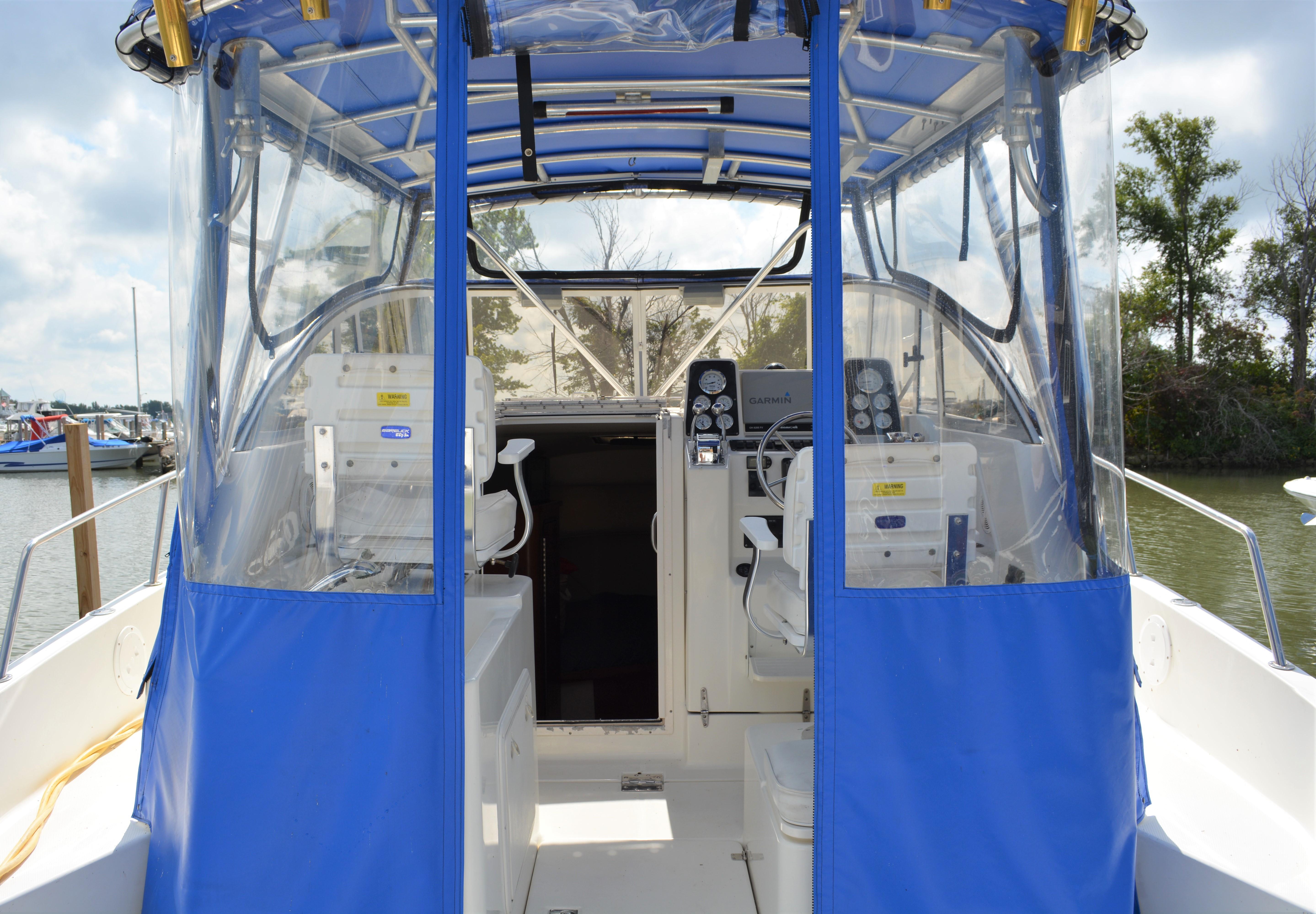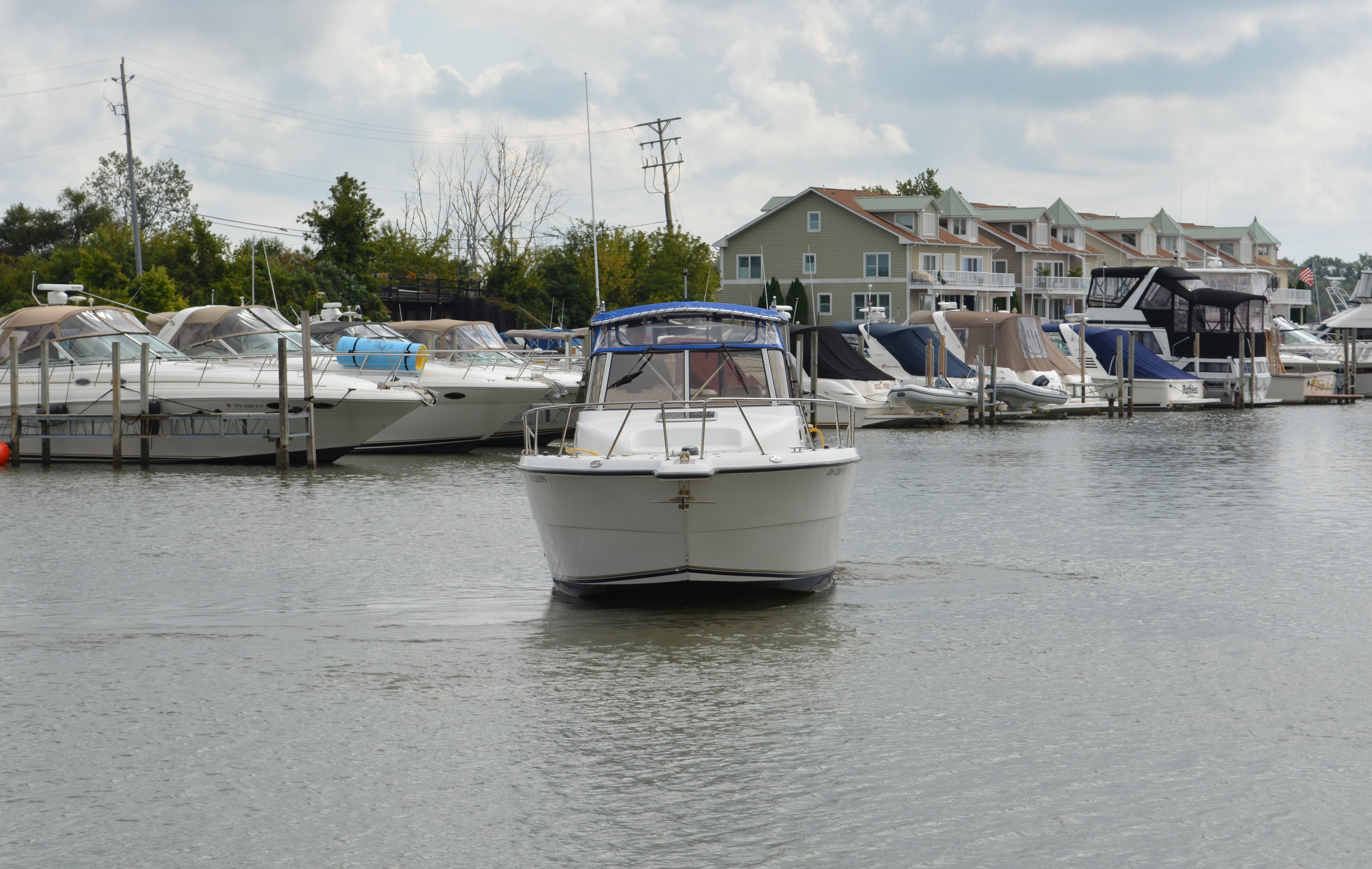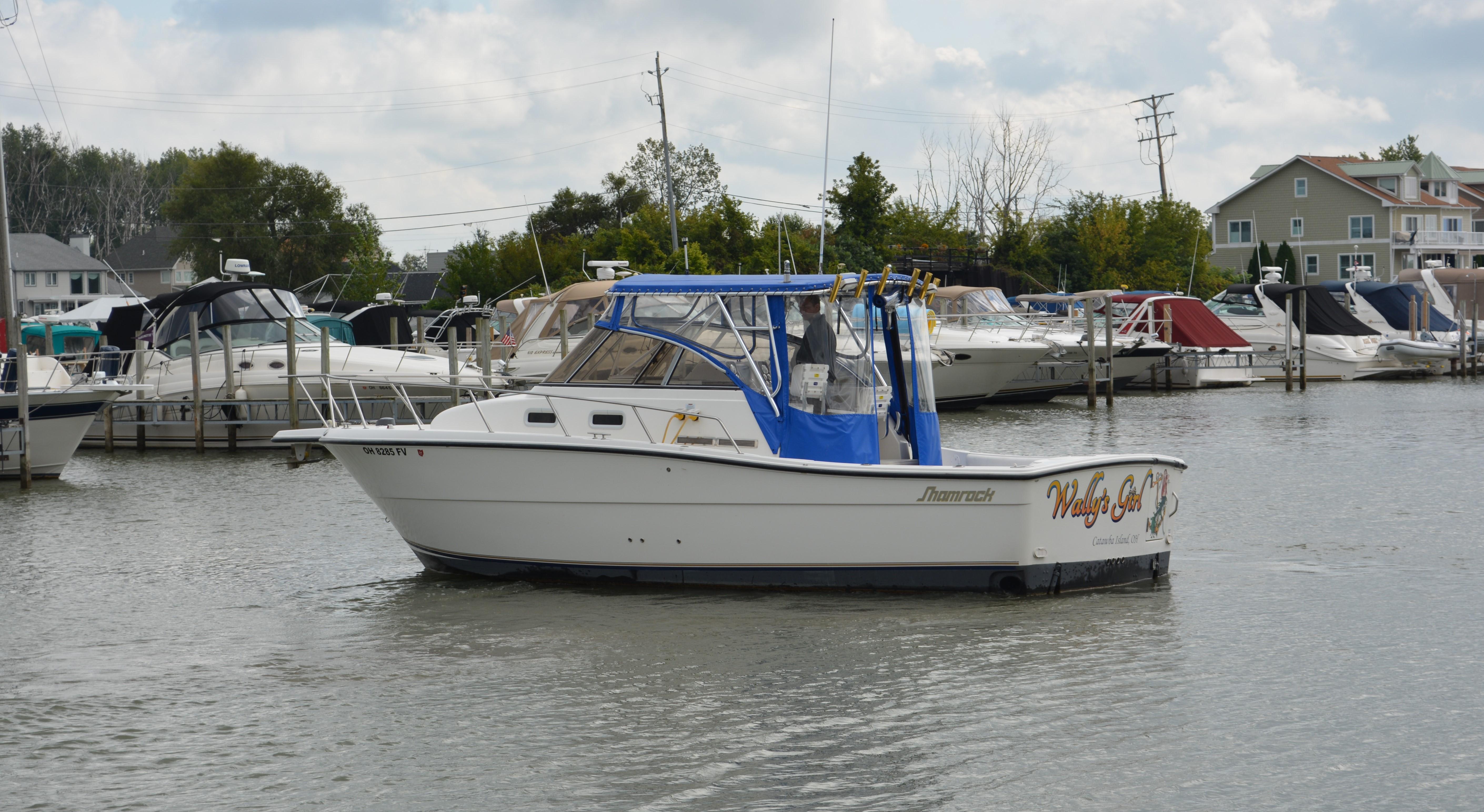 Clocking in at over 11,000lbs, the Shamrock 29 is a sportsman dream on Lake Erie. Especially in the late fall and early spring fishing seasons. However, don't let that fool you, as this rig has plenty of creature comforts to go around. A fully enclosed canvas protects the cockpit and passengers on those extra wet days. As you move into the cabin, you are greeted by dark wood finishes and plush upholstery. The cabin features a vaccuflush head, heat and a/c, plus microwave with an electric stove. For a full rundown, give us a call today!