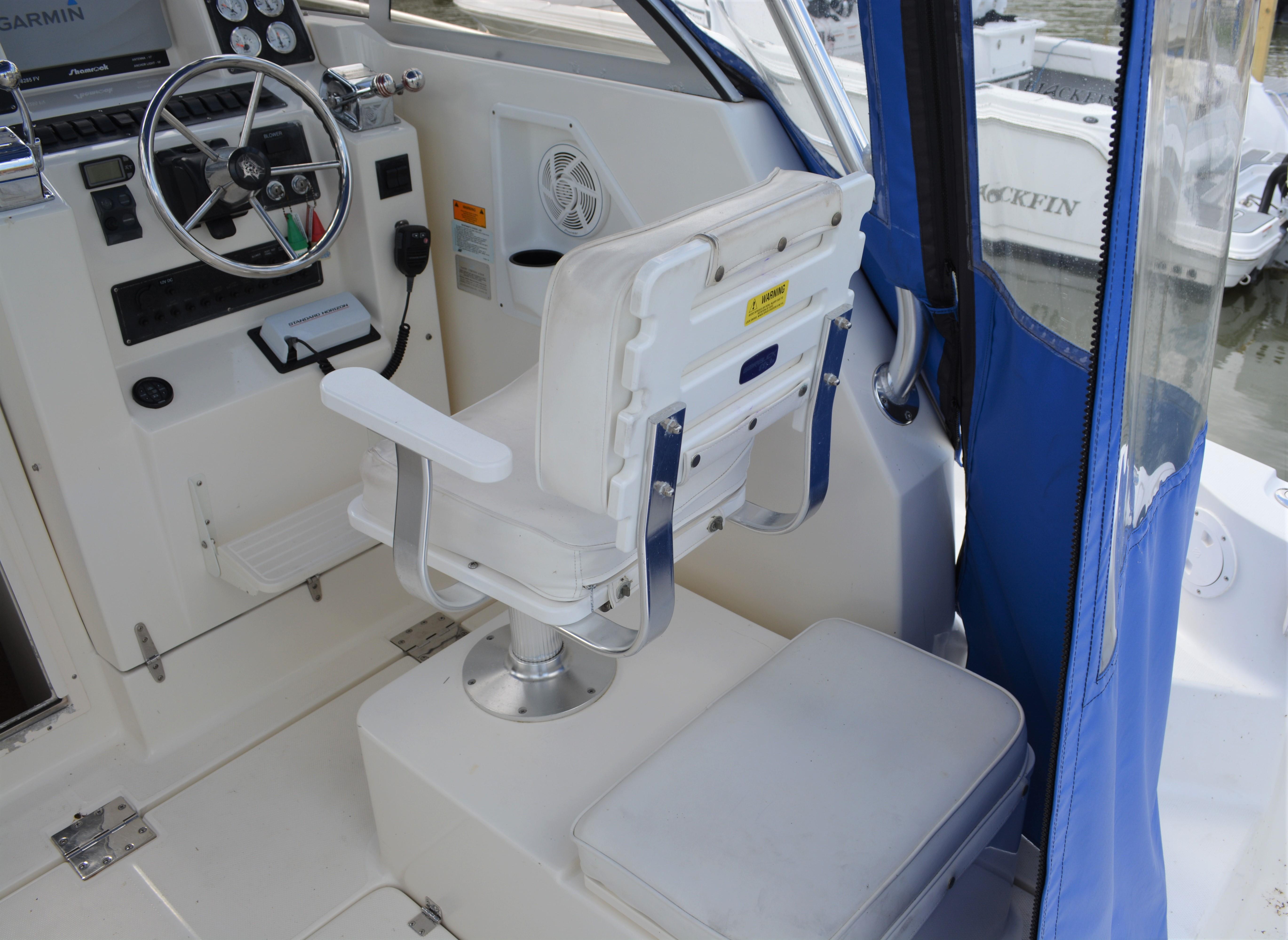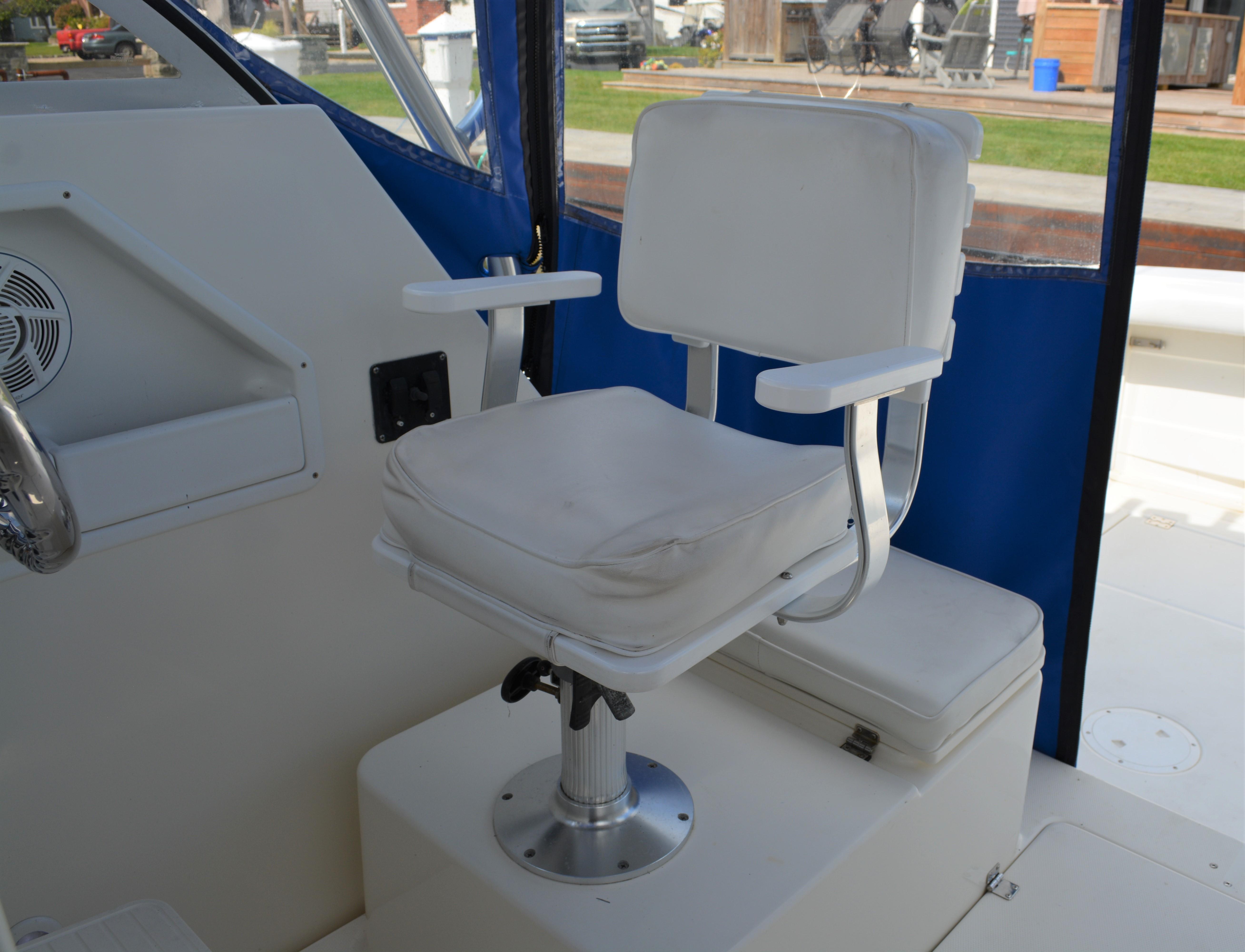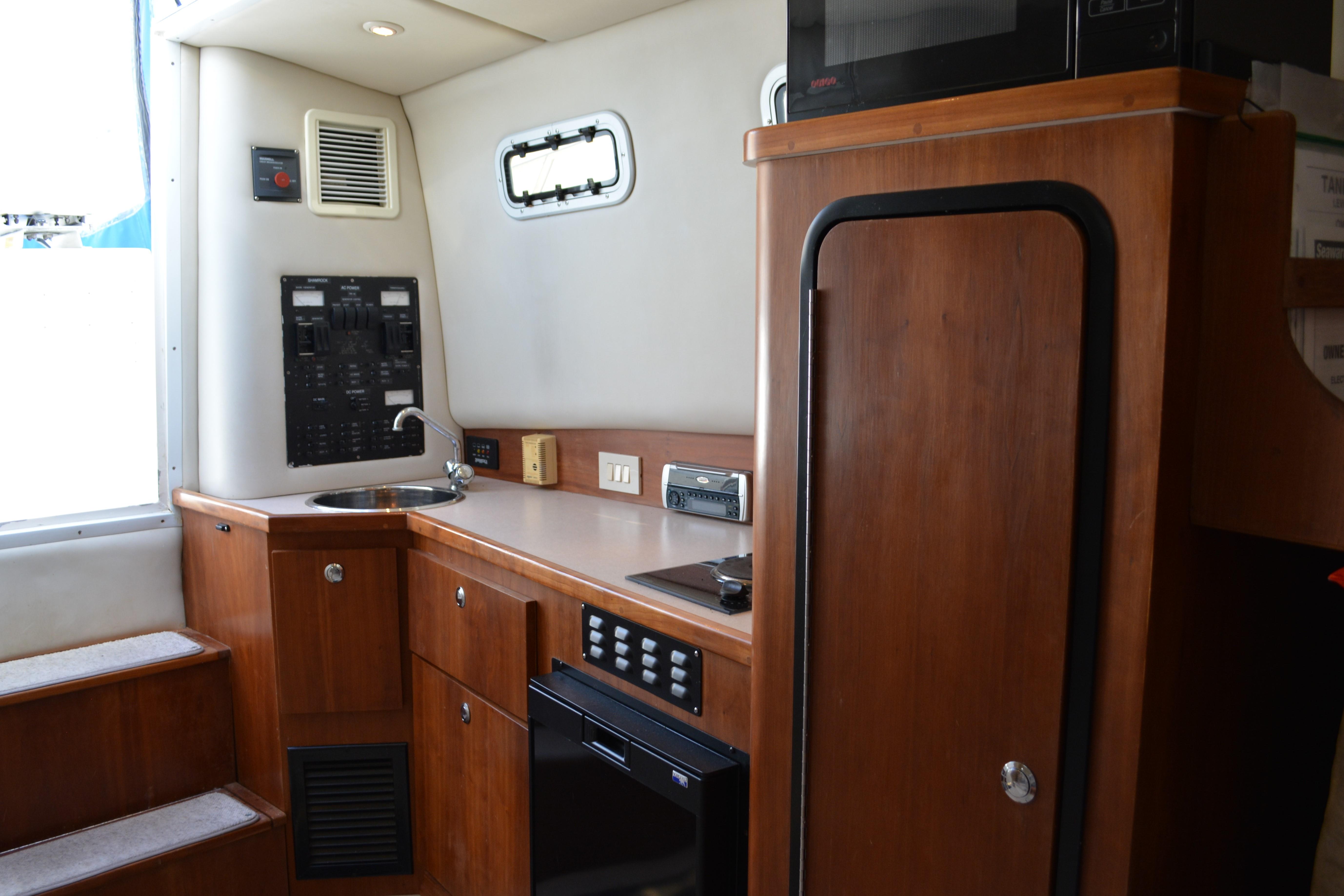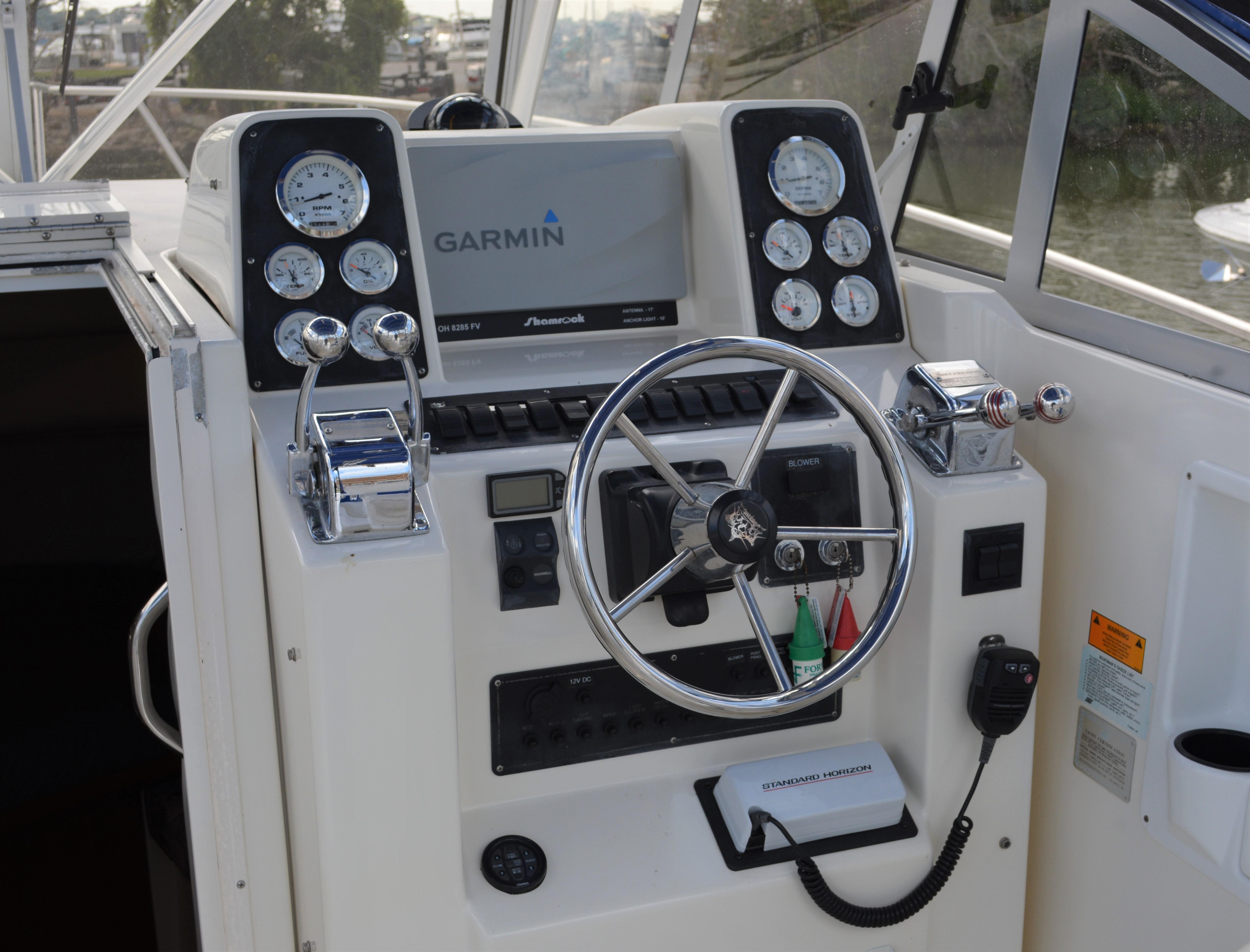 Clocking in at over 11,000lbs, the Shamrock 29 is a sportsman dream on Lake Erie. Especially in the late fall and early spring fishing seasons. However, don't let that fool you, as this rig has plenty of creature comforts to go around. A fully enclosed canvas protects the cockpit and passengers on those extra wet days. As you move into the cabin, you are greeted by dark wood finishes and plush upholstery. The cabin features a vaccuflush head, heat and a/c, plus microwave with an electric stove. For a full rundown, give us a call today!