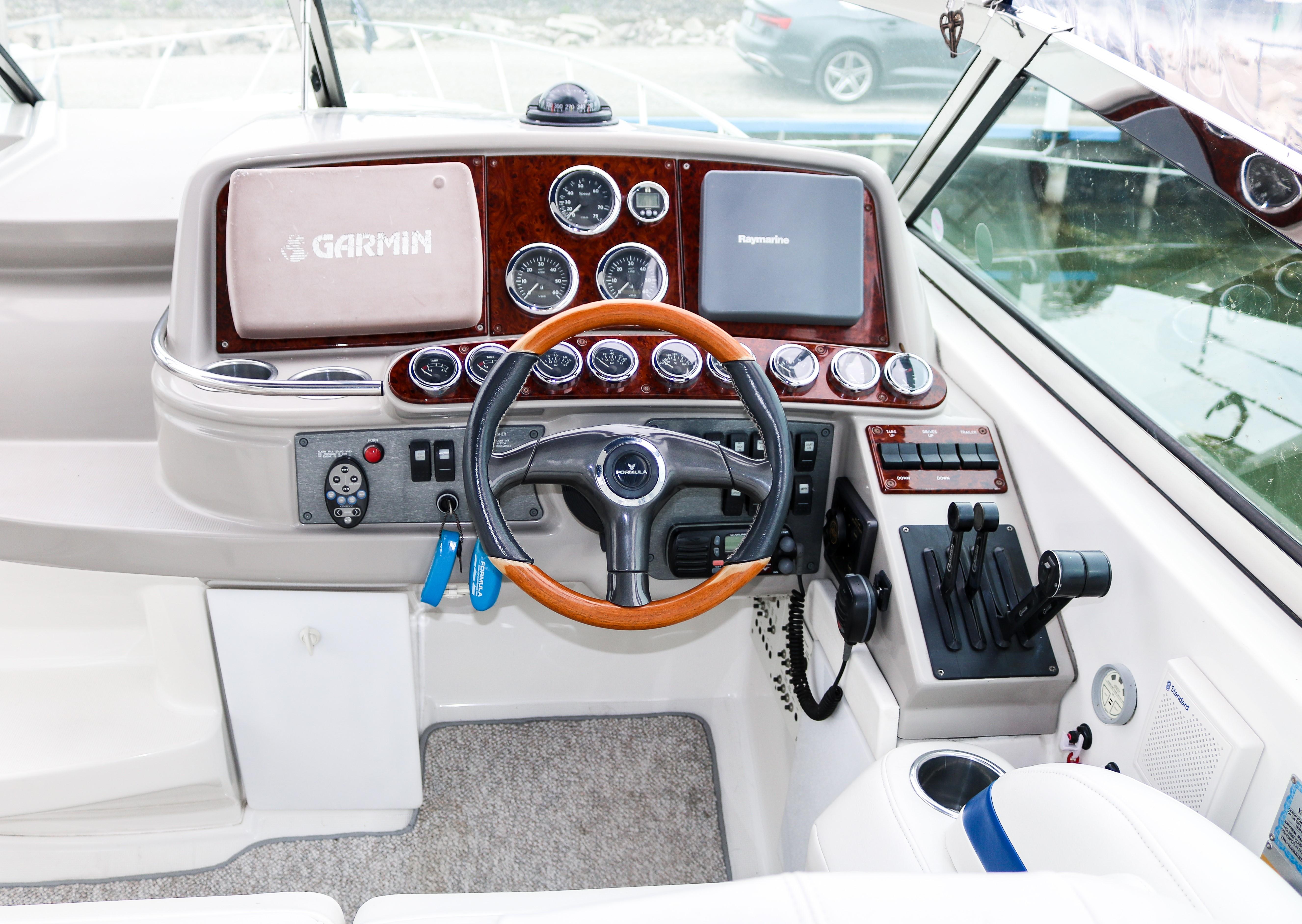 The 370 SS shares many features with Formula’s high-performance products. The hull form includes multiple transverse steps, longitudinal strakes, a keel pad and a deadrise of 21 degrees at the transom.