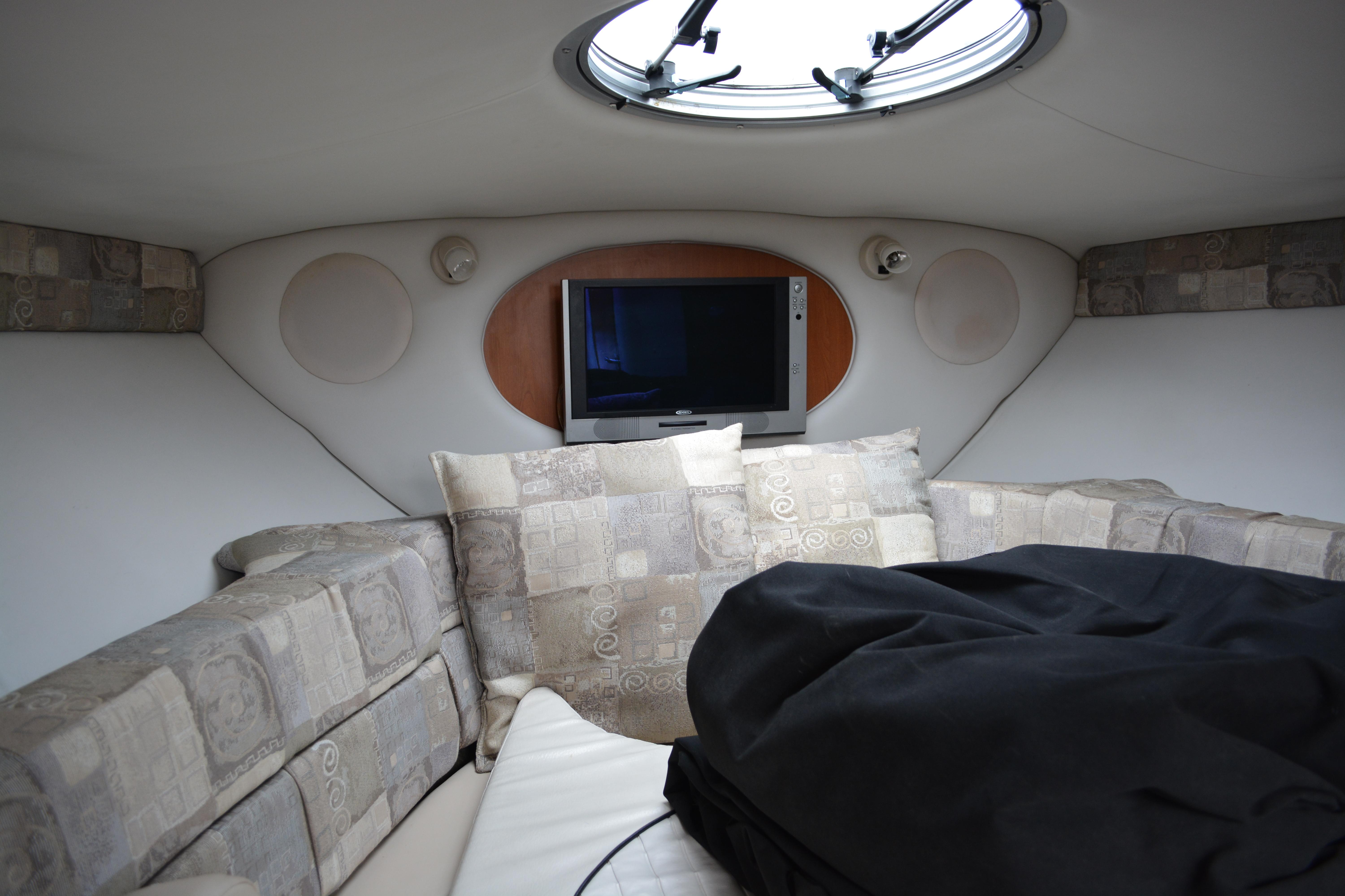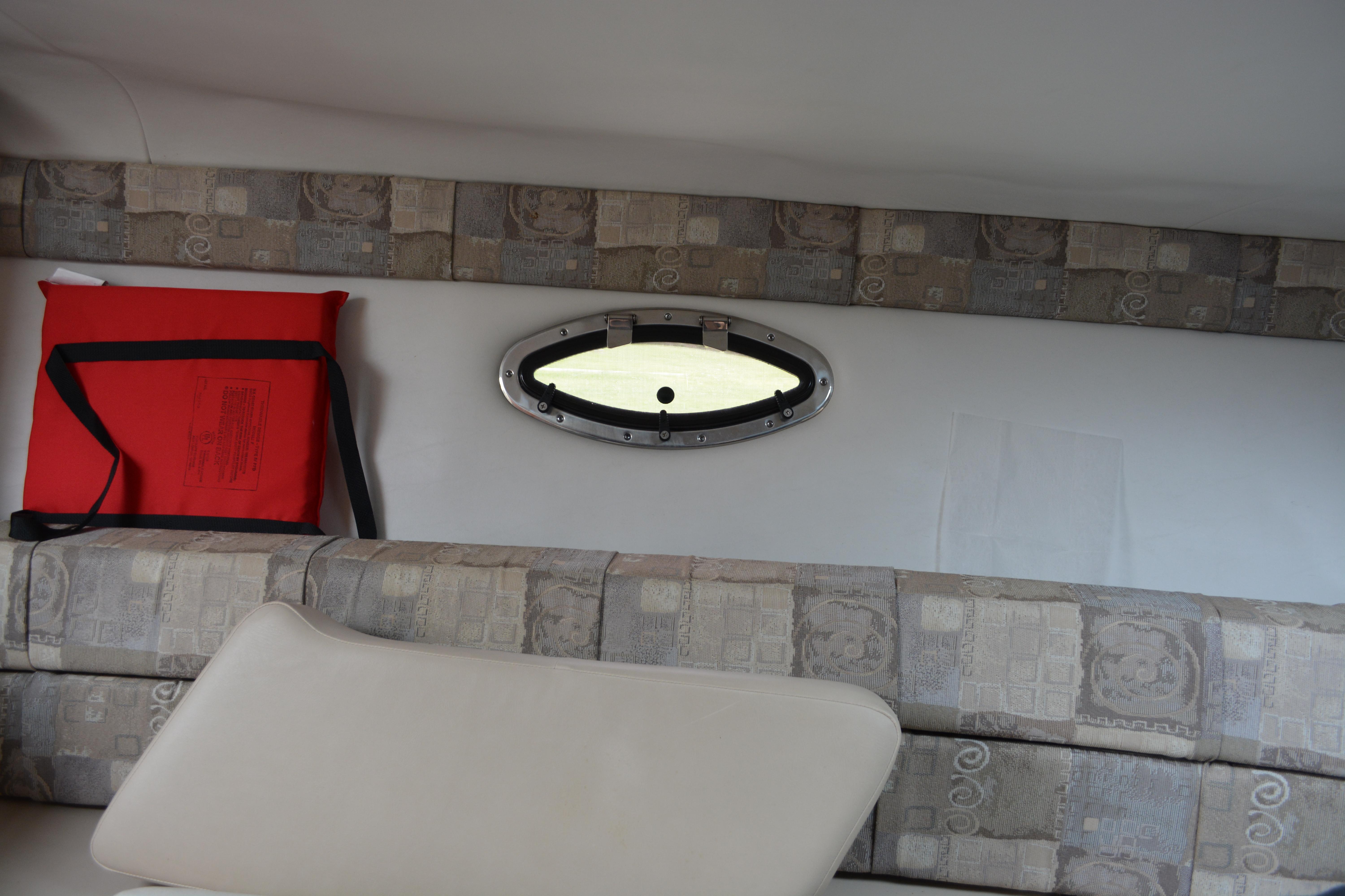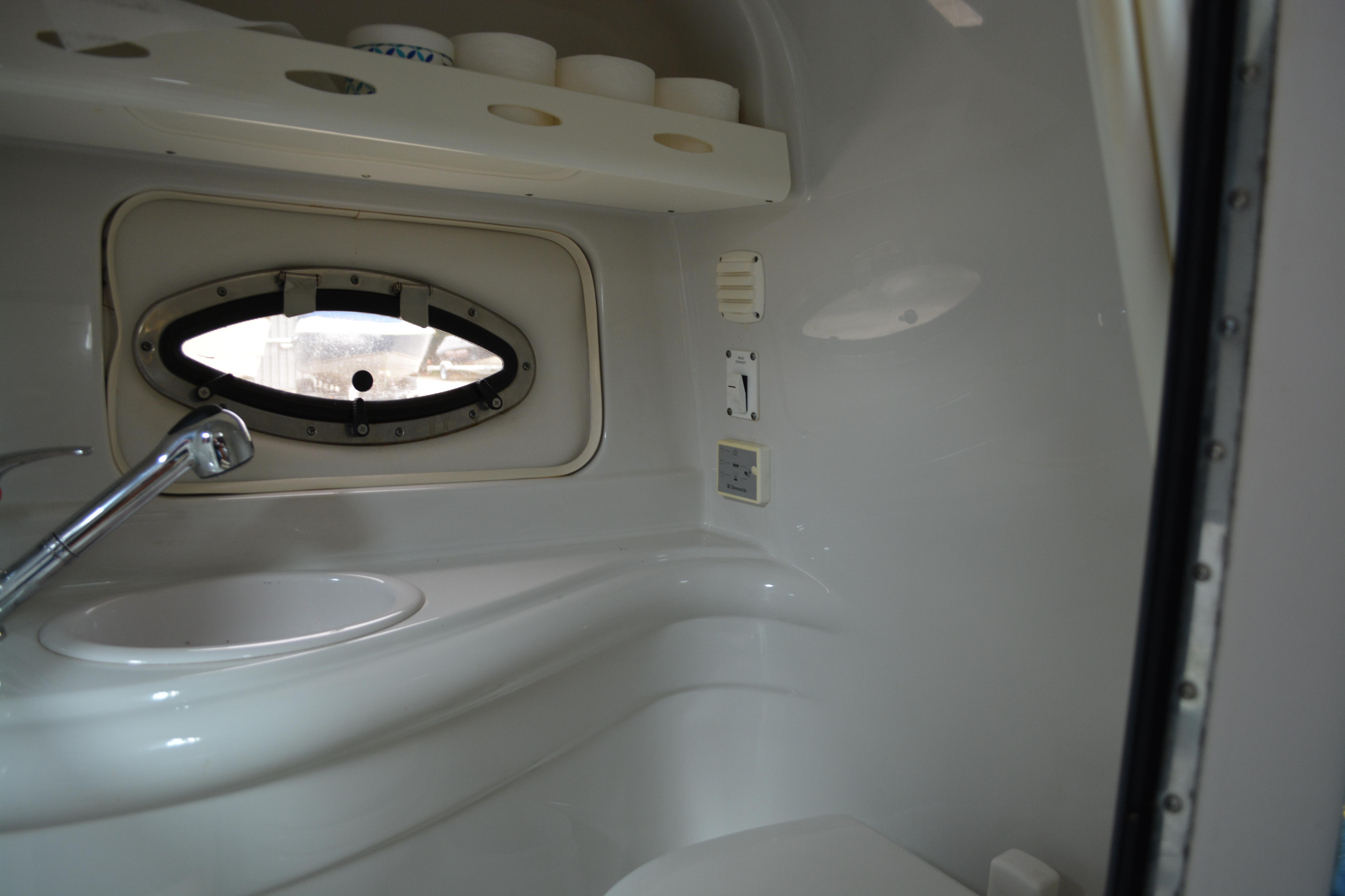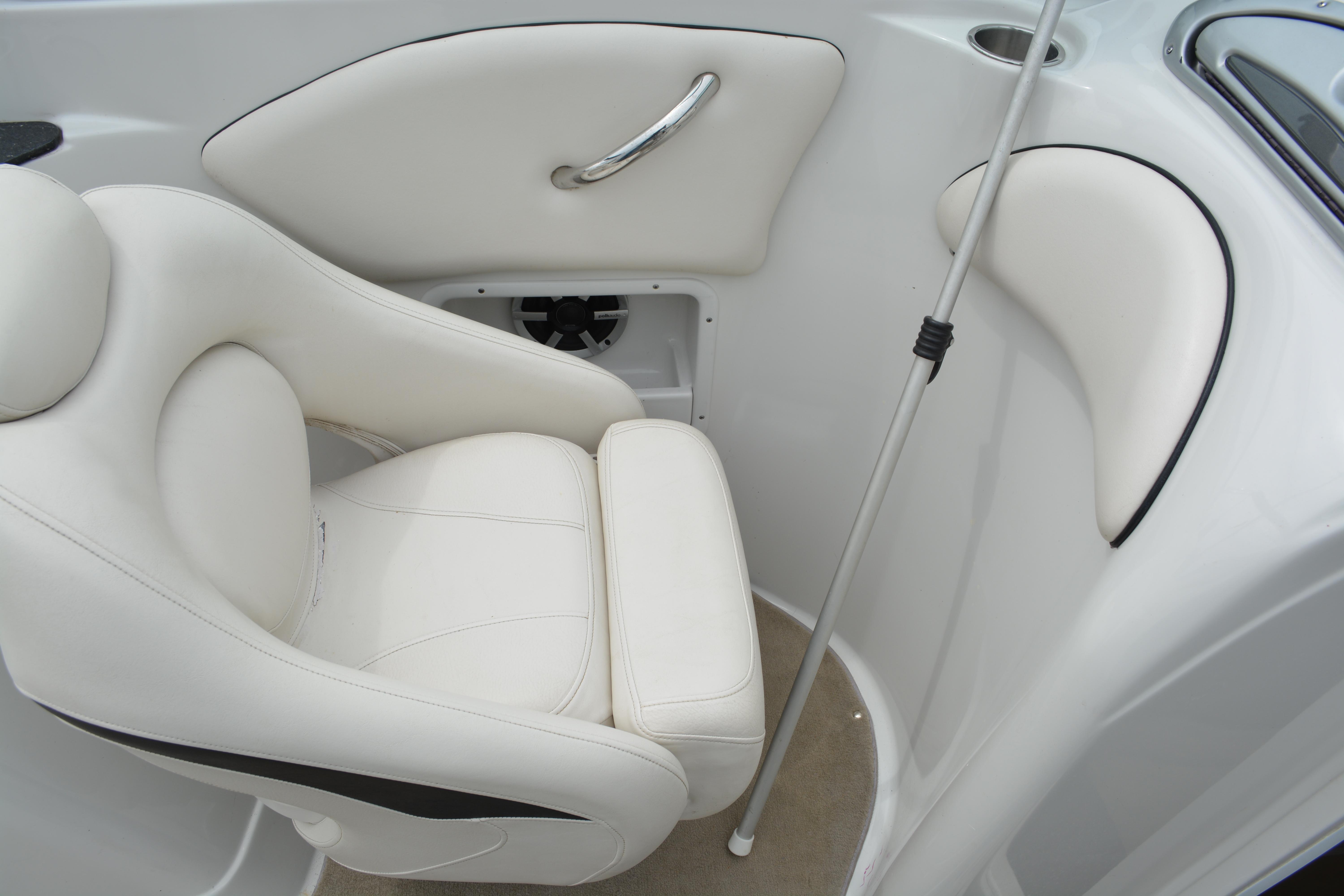 Built on Crownline's exclusive F.A.S.T. Tab hull, this beauty is not only a performer, it's a luxury vessel as well. Hull and deck standards include a classic Crownline helm with flip-up Tri-Tech bucket seats, full instrumentation, a compass, engine hour meter and tilt steering wheel. Below deck, a luxurious cabin features premium carpeting and a galley with custom cherry wood cabinets, microwave, stainless steel sink and refrigerator. An enclosed head compartment features a Vacu-Flush toilet and shower sump pump.